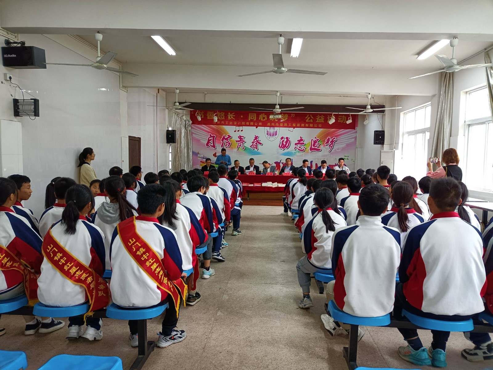 本次活動(dòng)在雄偉莊嚴(yán)的國(guó)歌聲中拉開了帷幕,山門鎮(zhèn)黨委副書記、鎮(zhèn)長(zhǎng)蘇斌,山門鎮(zhèn)初級(jí)中學(xué)書記、校長(zhǎng)蘇連福首先對(duì)工業(yè)院、建設(shè)咨詢公司一行的到來表示歡迎,對(duì)兩支部關(guān)心老區(qū)教育,心系老區(qū)學(xué)子,熱心公益事業(yè)致以衷心的感謝。蘇斌表示,學(xué)校今后將大力開展閱讀活動(dòng),努力打造書香校園,希望學(xué)生們通過閱讀打開通往世界的大門。同時(shí),他教導(dǎo)學(xué)生們要以感恩之心暢享閱讀、沐浴書香,以優(yōu)異的成績(jī)來報(bào)答社會(huì)的關(guān)愛之情。